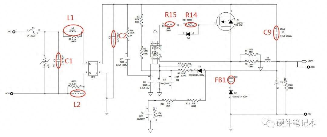 这是一款输入宽电压120-277V 60Hz,输出48V,273mA的电源,采用Buck拓扑结构。