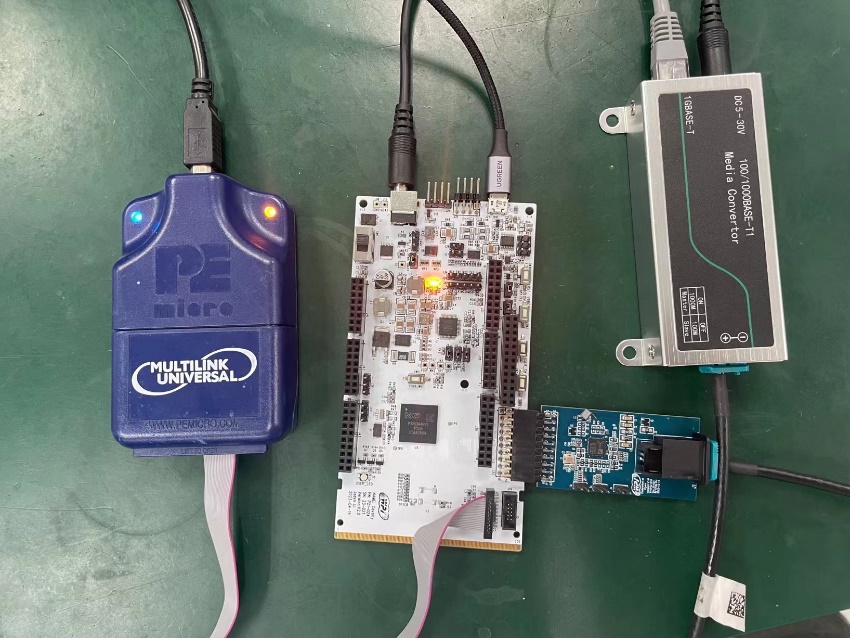 方案软件部分搭配世平 NXP S32K344 开发板,通过通过 J33 接口与 JL3101 以太网模块对插,接线方式如下图所示:
